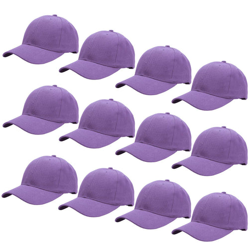 12-Pack Baseball Dad Cap Velcro Strap Adjustable Size - Lavender