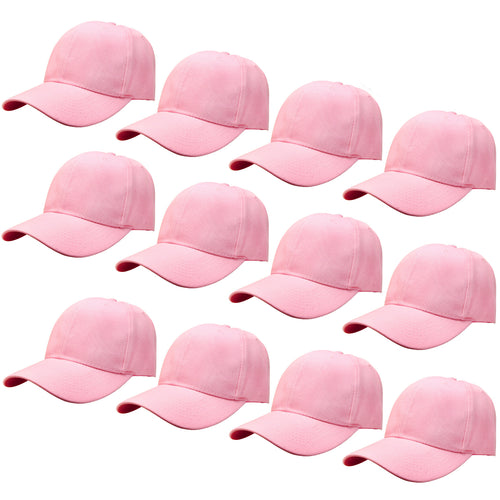 12-Pack Baseball Dad Cap Velcro Strap Adjustable Size - Pink