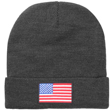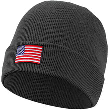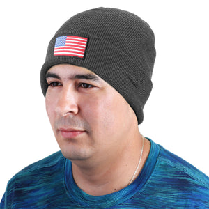 American Flag Embroidered Beanie Hat - Dark Gray